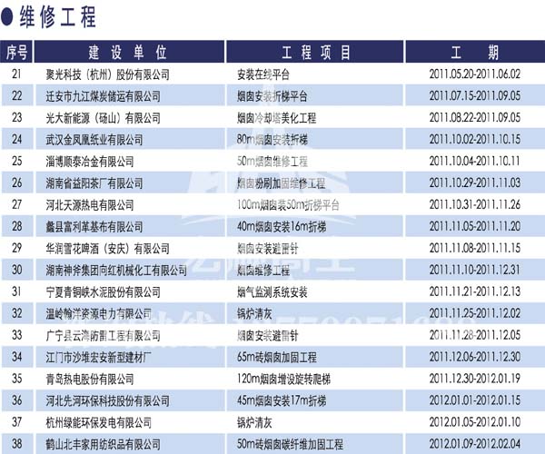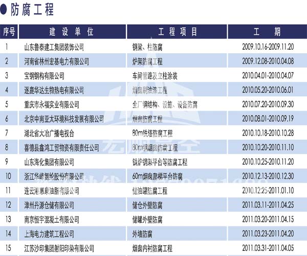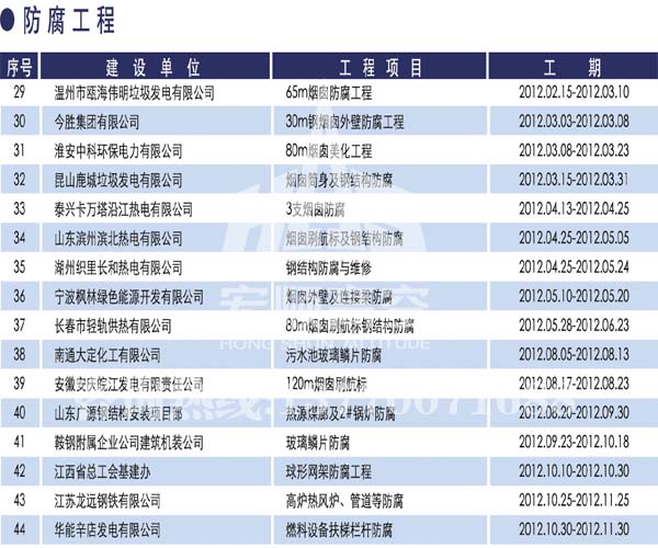 宏順建設工程有限公司是國家批準成立的專業(yè)高空作業(yè)企業(yè):承攬過(國內(nèi).國外)煙囪新建、煙囪防腐、吊機防腐、水塔防腐、管道防腐、龍門吊防腐、儲存罐防腐、煙囪內(nèi)壁防腐等高空作業(yè)工程。具有“不搭腳手架 、 不需要停產(chǎn)”施工特點。